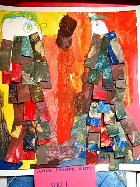 Pipacsmesék a Szőlő Csoportosok tollából. A képekhez felhasznált technikák: ragasztás, szórás, tépés, festés.